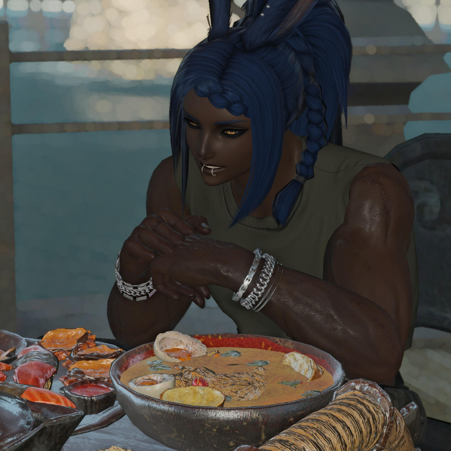 Shi'anla Radusk: Naja's wife and first ever romantic partner. Romance wasn't something he ever envisioned experiencing, but exploring it with Shi has been an eye-opening and incredibly fulfilling experience for him. Check out Shi's carrd here!